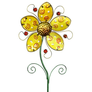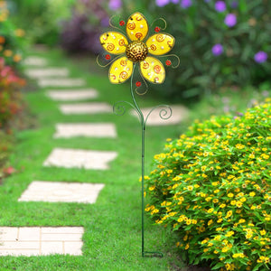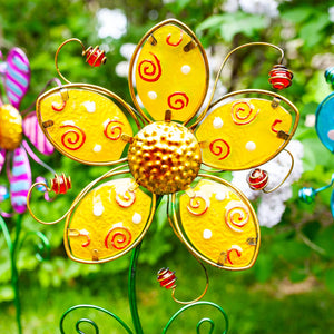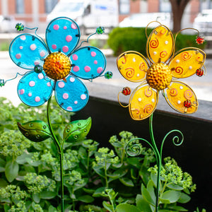 Really nice Quality! Vivid colors and made of metal and glass. Not cheap plastic! I like metal stakes because you can re-spray when they are weathered. Glass does not age much.